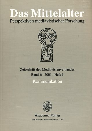 "Kommunikation. Band 6. 2001. Heft 1. Das Mittelalter. Perspektiven mediävistischer Forschung. Zeitschrift des Mediävistenverbandes." "Akademie Vlg., 2001.". "188 S.; kart.". "Ein gutes Ex. - ISSN 0949-0345. - HEDWIG ROECKELEIN: Kommunikation - Chancen und Grenzen eines mediävistischen Forschungszweiges -- Auswahlbibliographie -- VOLKER HONEMANN: Formen symbolischer Kommunikation in deutscher Literatur des Mittelalters -- FIDEL RAEDLE: Über das leibhaftige Reden Gottes mit dem Menschen (nach dem Zeugnis der Bibel und der Exegese) -- WOLFRAM DREWS: ""Damit die Kette der Tradition nicht zerreißt"" Die Intervention des Nachmanides in der zweiten Phase der Mäimonideskontroverse -- MARKUS A DENZEL: ""Wissensmanagement"" und ""Wissensnetzwerke"" der Kaufleute: Aspekte kaufmännischer Kommunikation im späten Mittelalter -- CORDULA SCHOLZ: In fremden Landen Handel treiben - ausländische Händler in Byzanz -- ERNST SCHUBERT: Erscheinungsformen der öffentlichen Meinung im Mittelalter -- Mitteilungen des Mediävistenverbandes -- Forum Mittelalter. ".