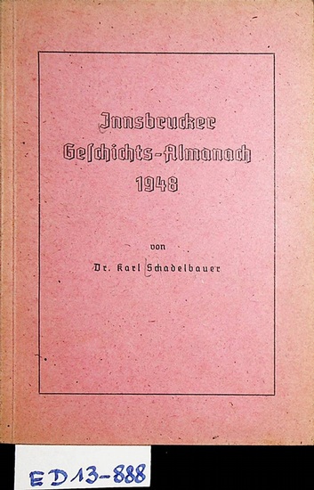 Innsbrucker Geschichts-Almanach 1948. Innsbruck, Verlag Albert Ditterich, 1948. Original Broschur, kl.-8?, 57 S.; Zustand: sehr gut.