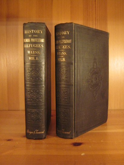 The History of the French Protestant Refugees from the Revocation of the Edict of Nantes to our own Days, 2 Volumes. New York, Stringer & Townsend, 1854. 382, 419 S. Schwarze Original-Ganzleinenbände mit goldgeprägten Rückentiteln sowie ornamentalen Blindprägungen auf Rücken und Deckeln; Bd. 1 mit Bildnis von Papst Pius V (St Pius the Fifth) als Frontispiz. Beide Bände in gutem Zustand, allenfalls geringfügig berieben, Ecken etwas bestoßen; Seiten sauber und nahezu fleckenfrei (Both volumes are in good condition, slightly rubbed, corners bumped slightly, pages clean and virtually free of foxing.