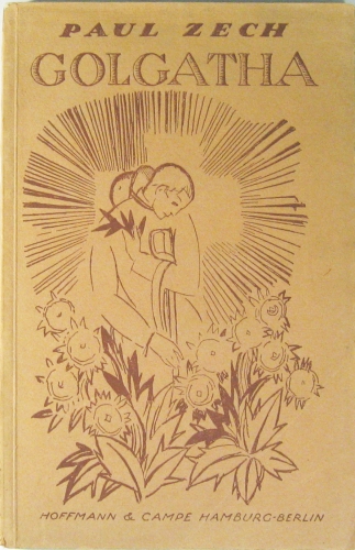Golgatha. Eine Beschwörung zwischen zwei Feuern. [Gedichte.] Hamburg u. Berlin, Hoffmann und Campe, 1920. 136 S. Gr.-8°, Orig.-Broschur mit Deckelillustr. von Bert Joho. Erste Ausgabe. - Neben vorliegender Normalausgabe erschien eine Vorzugsausgabe in 50 nummerierten und signierten Exemplaren. - Die Gedichtsammlung wurde 1917/18 von elf Verlegern aus wirtschaftlichen Gründen abgelehnt. Auch der Verlag Hoffmann und Campe konnte dem nur beipflichten, 'daß auch heute mit diesem Buch schwerlich ein 'Geschäft' zu machen ist; jedoch - gibt's nicht auch Selbstmordanwandlungen?' (S.7) - Kapitale etwas angeplatzt, Broschur gering berieben, teils unaufgeschnitten. - Raabe/Hannich-B. 339.18.