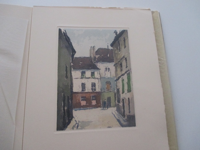 Montmartre. Eaux-fortes originales. (Paris), L'Estampe moderne, (1945). 33 : 25,5 cm. 105 Seiten, 2 Blatt Mit 13 farbigen Original-Radierungen von Robert Sterkers. Lose Bogen in farbig illustriertem Original-Umschlag in Original-Halbleinen-Decken, Schuber. Auf dem Vortitel Widmung an den tschechischen Minister Jan Masaryk, datiert Paris 14. September 1946. - Erste Ausgabe. Eins von 500 numerierten Exemplaren auf papier d'Arches.