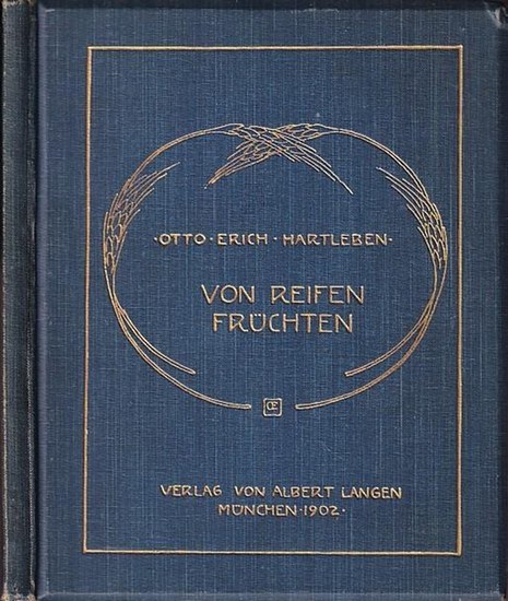 Von reifen Früchten. Meiner Verse zweiter Theil. München Albert Langen, 1902. W/G 22. Erste Ausgabe. Vorliegend No. 5 von nur 30 Exemplaren auf Japan. 8°. Blauer Original-Ganzleinenband mit goldgeprägtem Deckeltitel und Deckelverzierungen nach einem Entwurf von Emil Orlik. Kopfrotschnitt. Hinteres Aussengelenk berieben, Ecken und Kanten etwas bestoßen. 49 (+1) Seiten. Papier geringfügig gebräunt. Richtig schön sauber, gutes Exemplar. Auf dem Titel mit eigenhändiger Widmung des Autors Hartleben: Meinem lieben Wilhelm Bölsche / mit herzlichem Gruß / Otto Erich / Salo, 30. Nov. 1902! - Auf dem Schmutztitel vom Dichter eigenhändig nummeriert, im Impressum ein zweites Mal handschriftlich benummert. M12995.
