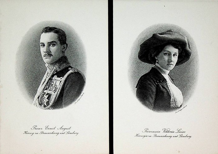 BRAUNSCHWEIG und L?NEBURG, Ernst August (Braunschweig) (1887?1953), Herzog von Braunschweig und seine Frau Viktoria Luise von Preu?en (1892?1980) 2 Stahlstiche ca 1913. 2 Portraits, Stahlstiche von Th. /. A. Weger in Leipzig, Blattformat ca. 14,5 x 10 cm. Portrait, kein Buch, antike Grafik verso: weiss, Portrait, no book, antique graphic verso: whitePortrait, no book, antique graphic verso: white.
