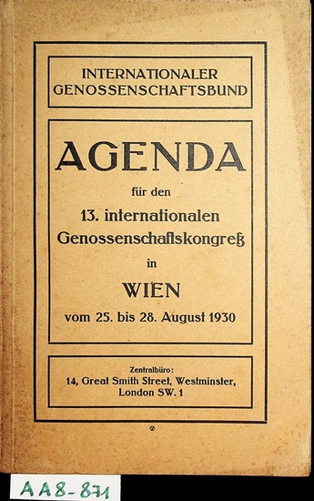 Agenda f?r den dreizehnten Internationalen Genossenschaftskongre? in Wien : vom 25. bis 28. August 1930