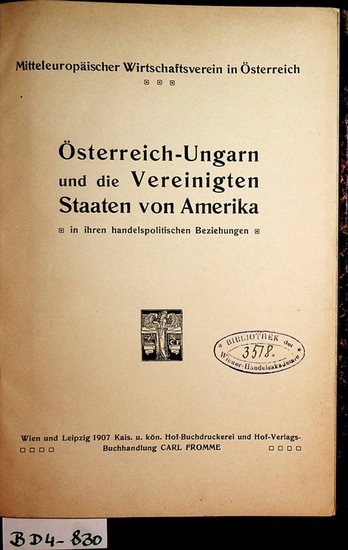 ?sterreich-Ungarn und die Vereinigten Staaten von Amerika in ihren handelspolitischen Beziehungen / Mitteleurop?ischer Wirtschaftsverein in ?sterreich