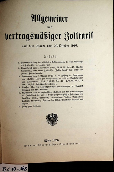 Allgemeiner und vertragsm??iger Zolltarif : nach dem Stande vom 20. Oktober 1926